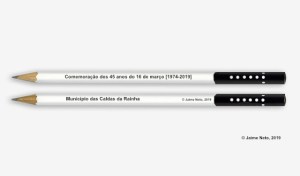 - 2ª proposta — A Câmara Municipal das Caldas da Rainha (CMCR) encomendar 5000 lápis HB e B, para distribuir gratuitamente pelos alunos do primeiro, segundo e terceiro ciclos das escolas das Caldas da Rainha de forma a incentivar os alunos, com um gesto simbólico, a escrever e fazer desenhos sobre o 16 de março, enquadrados pela sensibilização e trabalho dos professores e da gestão das escolas. Os lápis seriam brancos, com letras a preto e pontos brancos em fundo preto (1 ponto e 6 pontos), alusivos graficamente à marcha dos militares para Lisboa na noite do 16 de março (ver imagem em anexo).