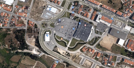 - Acresce que o terreno privado no qual está implantado o hipermercado “E.Leclerc” apresenta uma área muito significativa de cerca de 35 000 m2, abrangendo as extensivas áreas de estacionamento a céu aberto para 367 automóveis, para além de edificações de serviços comerciais muito diversos que a “Gestelec” tem vindo sucessivamente a licenciar junto da Câmara Municipal : a) “BurgerKing” com 451,14m2; b) “AutoGlass—Vidros para viaturas, Lda.; c) Pizzaria Take-Away com 16 m2; d) Posto automático de lavagem de viaturas com 144 m2, em processo de tramitação; e) Posto de abastecimento de combustíveis, com cerca de 1 000 m2;